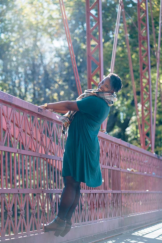 We originally only made it to the bridge, cause that is the traditional spot, until and passing hiker told us about this amazing view at the top of the bluff. Akira traversed the the trail in her heels. It was totally worth as the scene opened up to the view over the river.